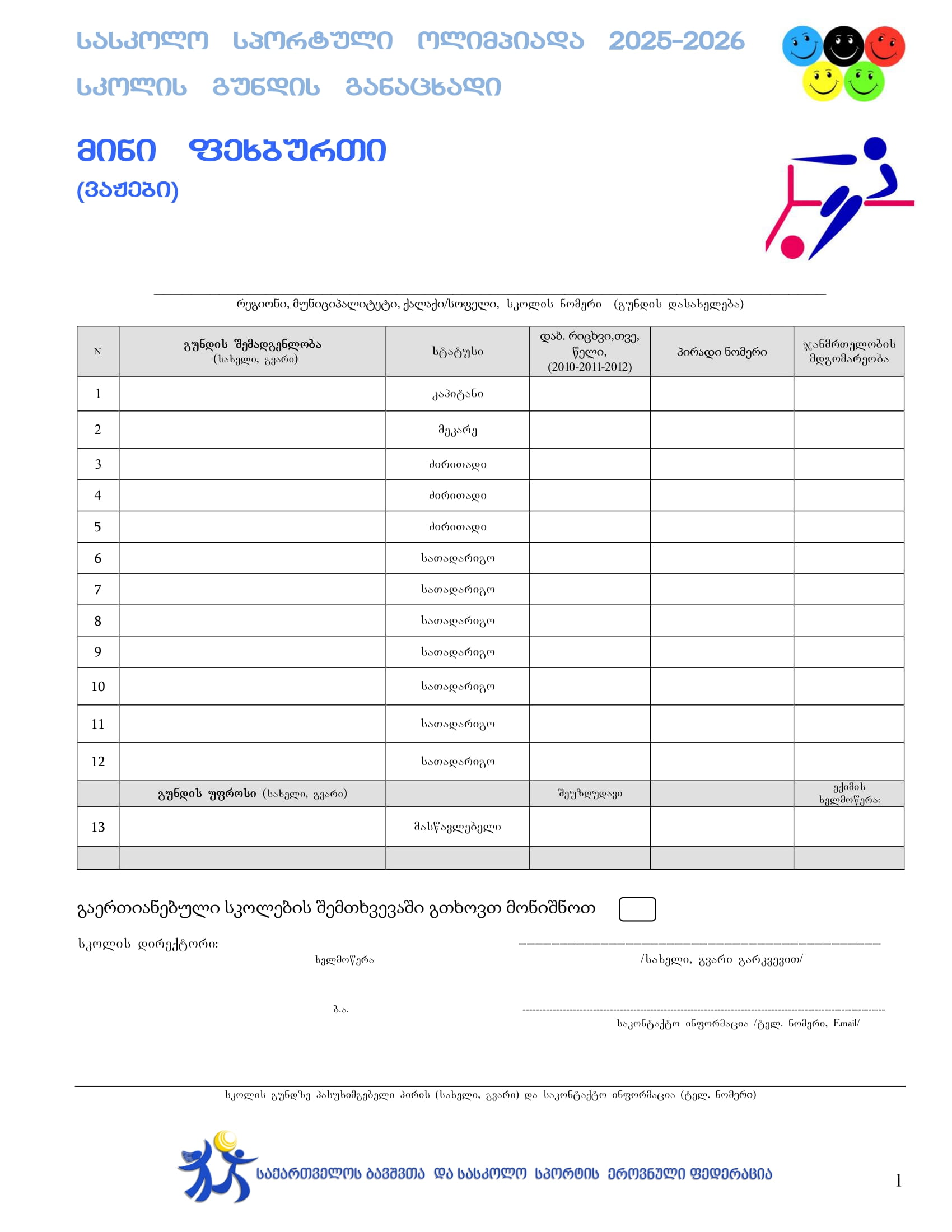 განაცხადის ფორმა - მინი ფეხბურთი (ვაჟები)