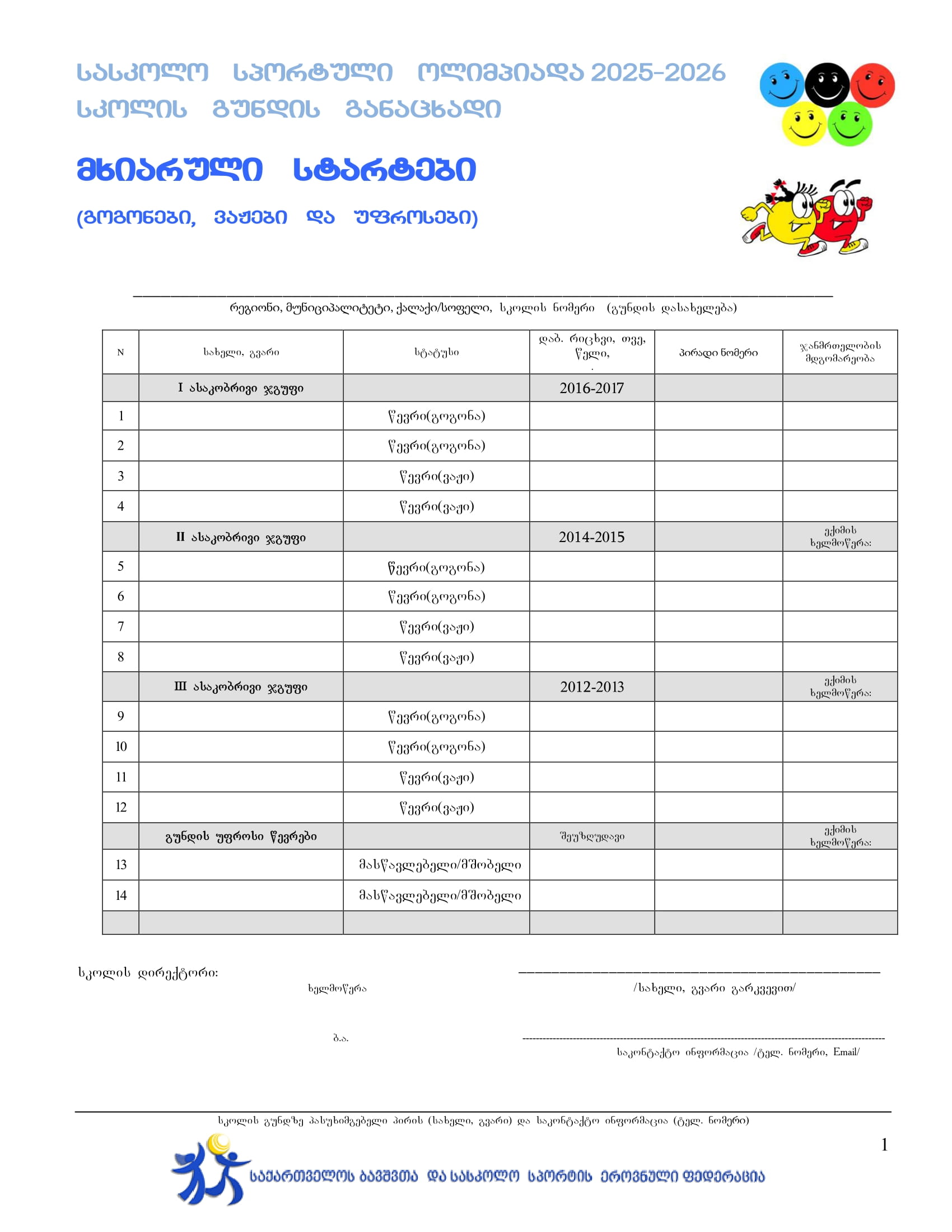 PDFგანაცხადის ფორმა მოიცავს გუნდის წევრთა მონაცემებს.